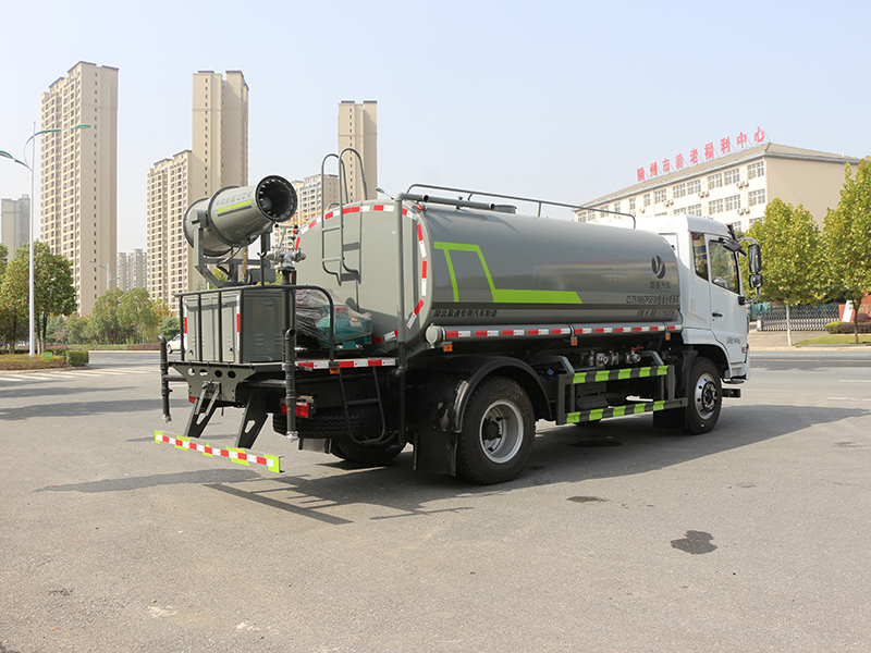 標準配置灑水車主要裝備有:前沖(沖洗公路路面)、后灑(公路路面養護)、側噴、高位側花灑(路邊綠化帶優化);后工作平臺高壓水炮,可調節成柱狀,射程≥28m;也可調節成霧狀,射程≥30米,水泵自吸高度:≤7m,灑水寬度:≥15m。側防護網,自流閥,消防接頭。灑水車水泵為常壓水泵,功能可以抽水、排水。另外根據用戶要求,可加消防泵、噴霧機、農藥卷盤、農藥柱塞泵。罐內可以做防腐防銹、電磁閥氣動閥自動放水等****,以滿足不同用戶需求。