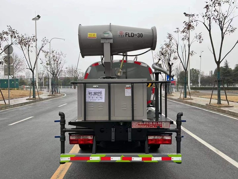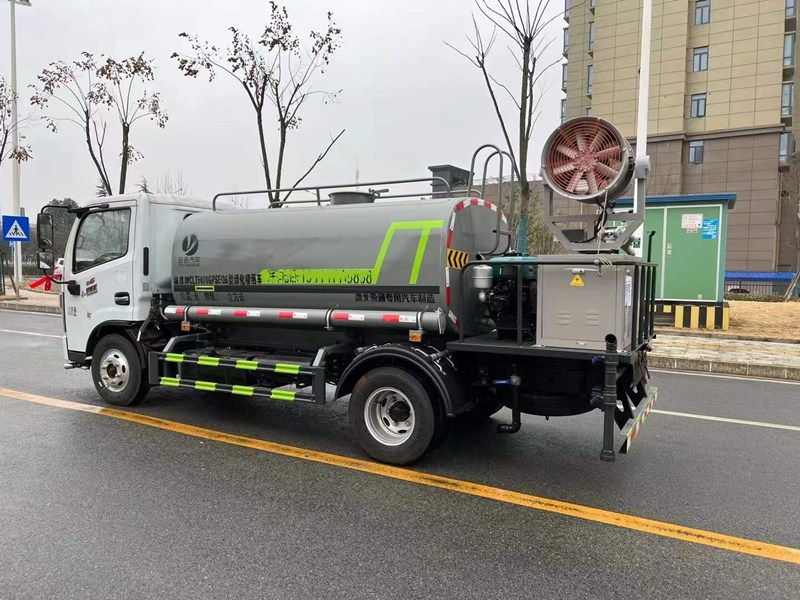 5噸霧炮灑水車專用功能配置:罐體實際容積約為5立方米,采用武鋼優(yōu)質(zhì)碳鋼板卷壓成型,自動焊接。配備專用灑水泵,自吸自排,前噴后灑、側噴、后工作平臺及灑水高壓炮。灑水泵自吸高度為6米左右,整車灑水寬度14米左右,后工作平臺高壓水槍上下左右360°旋轉(zhuǎn)可調(diào)成:直沖狀、大雨、中雨、小雨、有效射程≥28米,可整車帶接頭、水位計,自流閥。后工作平臺主管道有一個一寸的澆花接口,附送2根3米水管,1個爬梯,兩側及后保險杠。
