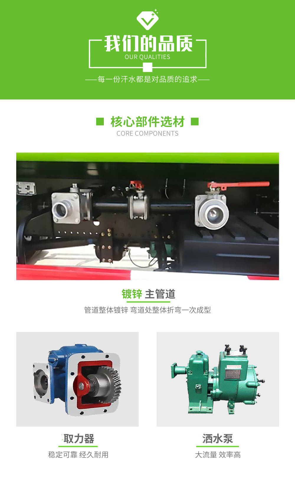 專用功能配置:罐體實際容積約為5立方米,采用武鋼優(yōu)質碳鋼板卷壓成型,自動焊接。配備專用灑水泵,自吸自排,前噴后灑、側噴、后工作平臺及灑水高壓炮。灑水泵自吸高度為6米左右,整車灑水寬度14米左右,后工作平臺高壓水槍上下左右360°旋轉可調成:直沖狀、大雨、中雨、小雨、有效射程≥28米,可整車帶接頭、水位計,自流閥。后工作平臺主管道有一個一寸的澆花接口,附送2根3米水管,1個爬梯,兩側及后保險杠。