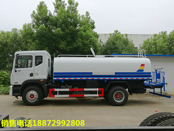 化。7.隨底盤選裝駕駛室。吸程7米,灑水寬度14-16米,射程25-30米,引水時間<5min,流量60m3/h。前沖()、后灑、帶側噴(花灑)、帶后工作平臺、平臺上安裝綠化灑水高炮(炮噴射形狀可調節:直沖、大雨、中雨、毛毛雨、霧狀、可連續調節,360°旋轉),配消防接口,自流閥,濾網,帶自吸自排功能配備大功率專用灑水泵,泵可自吸自排,安裝過濾網,帶消防接口,可通過消防栓進水,帶自流閥,隨車選裝20米綠化卷盤,可噴灑農藥,罐體金屬漆。罐體有橢圓和方圓罐兩種,可根據用戶的要求定做