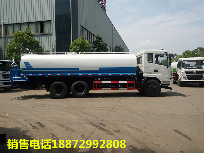 隨底盤選裝駕駛室;選裝側噴及農藥炮;品名:水;密度:1000千克/立方米;有效容積:15.6立方米;罐體外形尺寸(長×長軸×短軸)(mm):6600×2300×1500;ABS吸程≧7米,灑水寬度≧14-16米,射程≧25-30米,引水時間<5min,流量60m3/h。前沖(噴)、后灑、帶側噴(花灑)、帶后工作平臺、平臺上安裝綠化灑水高炮(炮噴射形狀可調節:直沖、大雨、中雨、毛毛雨、霧狀、可連續調節,360°旋轉),配消防接口,自流閥,濾網,帶自吸自排功能。配備大功率專用灑水泵,泵可自吸自排,安裝過濾網,帶消防接口,可通過消防栓進水,帶自流閥,隨車選裝20米綠化卷盤,可噴灑農藥,罐體金屬漆。罐體有橢圓和方圓罐兩種,可根據用戶的要求定做。