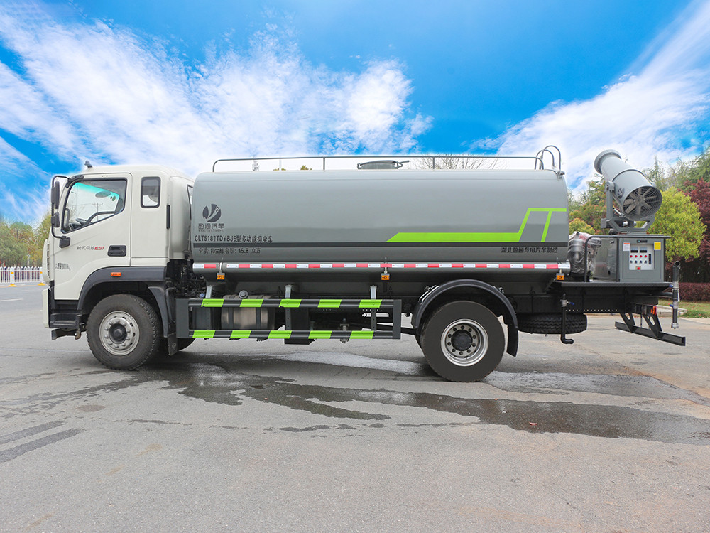二.產(chǎn)品配置 1.底盤配置: 發(fā)動(dòng)機(jī)玉柴 245 馬力(六缸),法士特 8 檔,3950 軸距,10.00 鋼絲胎,前 4.5T/后 10T,中控鎖,電動(dòng)玻璃,助力,空調(diào),行車記錄 儀2.上裝配置: 1、罐體約為 12 方,可加裝 30-40 型霧炮 2、邊燈帶電,罐體尾部上方標(biāo)配 2 個(gè)紅色示寬燈, 3、標(biāo)配前噴為鴨嘴直沖,標(biāo)配后沖,用戶可根據(jù)自己的需求,來調(diào) 整對(duì)沖位置。 4、花紋防滑平臺(tái),炮筒后蓋為定制型螺栓卡扣, 5、前噴、后沖、后灑、側(cè)噴,綠化高炮開關(guān)球閥均采用 50 大通經(jīng) 不銹鋼球閥, 6、新式軸承式水炮,更加耐用, 7、60-90 型水泵, 8、防腐法蘭墊片, 9、鋁制后灑,不易炸開 10、罐體自動(dòng)焊(美國(guó)林肯焊機(jī)及電源),拼板自動(dòng)焊接,封頭環(huán) 縫焊接,無氣孔,焊縫美觀。 11、側(cè)護(hù)網(wǎng)、后保險(xiǎn)杠、均為螺栓連接,方便拆卸,維修方便。 12、塑料擋泥板,替代鐵擋泥板,更加輕便,用螺栓連接,方便拆 卸。 13、前部、后部主管連接處為 6 孔圓法蘭,不易沖墊