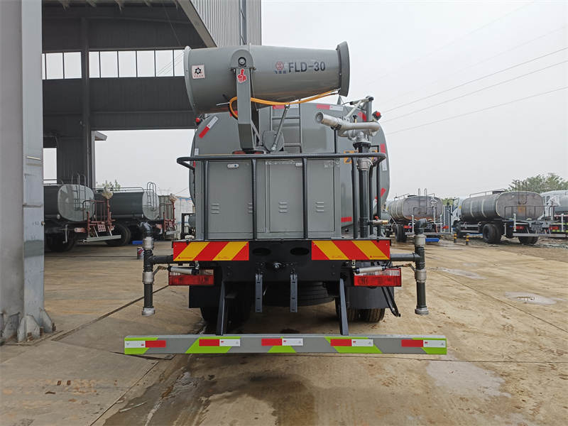 12方灑水車上裝配置: 1、罐體約為 12 方, 2、邊燈帶電,罐體尾部上方標配 2 個紅色示寬燈, 3、標配前噴為鴨嘴直沖,標配后沖,用戶可根據自己的需求,來調 整對沖位置。