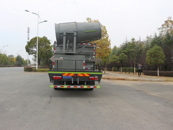 產品標配前噴(鴨嘴)、后沖、后灑、側噴、后置式工作 平臺,平臺上配置綠化水炮(可 360°旋轉,既可以調成柱狀,也可 以調成霧狀,更可以調成直沖狀、大雨、中雨、小雨、毛毛雨),配 備優質大功率專用灑水泵(可自吸自排,可從河里或池塘抽水到罐體), 取力器,雜物過濾網,消防接口,自流球閥系統、取力器、球閥、濾網 均為國家標準產品,主管道加粗,法蘭墊、法蘭盤加厚,大通徑球閥。 整體具備性能優良安全可靠、效率高、流量大、維修方便等特點