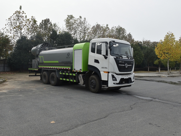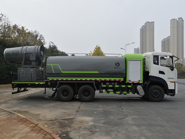 東風天龍大型霧炮灑水車整車型號 CLT5254TDYDF6A 型多功能抑塵車 2 發動機型號 D6.7NS6B290 3 發動機馬力/功率 康明斯 290 馬力/213KW 4 發動機排量 6700ML 5 變速箱 大同 7 檔 6 輪胎規格 295 真空胎 7 軸距 4350+1350 8 總質量 25000KG 9 整備質量 14250KG 10 額定載質量 10555KG 11 整車尺寸(長×寬×高) 10.65*2.5*3.8 12 罐體容積 18.3 方 13 燃料種類 柴油 14 排放標準 國六 15 水泵型號 60/90 16 罐體材質 Q235 碳鋼. 產品功能展示 前沖鴨嘴 后灑 后對沖 高炮 高位花灑 側噴 霧炮
