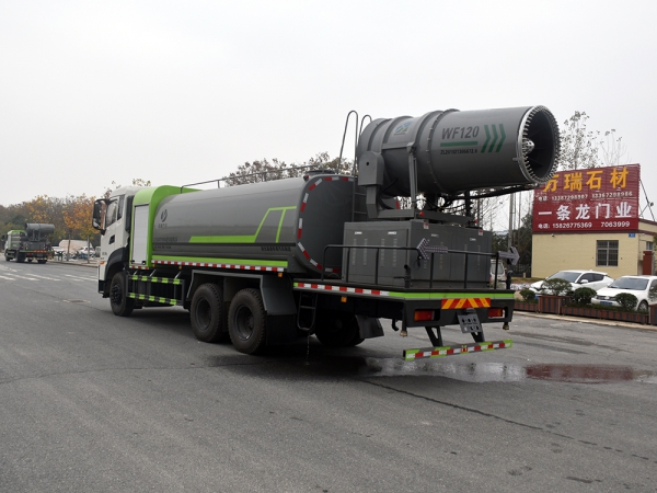 東風天龍大型霧炮灑水車產品簡述 抑塵車又稱為綠化噴灑車、多功能灑水車、園林綠化灑水車。抑 塵車適合于各種路面沖洗,樹木、綠化帶、草坪綠化,道路、廠礦企業 施工建設,高空建筑沖洗。抑塵也可以作為運水車使用,最常見的車 型有綠化噴灑車、多功能灑水車、綠化灑水車幾大類。