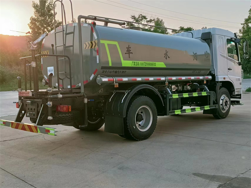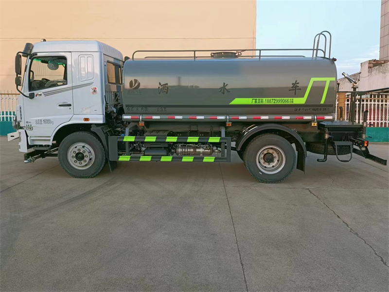 東風華神12噸灑水車產品標配前噴(鴨嘴)、后沖、后灑、側噴、后置式工作 平臺,平臺上配置綠化水炮(可 360°旋轉,既可以調成柱狀,也可 以調成霧狀,更可以調成直沖狀、大雨、中雨、小雨、毛毛雨),配 備優(yōu)質大功率專用灑水泵(可自吸自排,可從河里或池塘抽水到罐體), 取力器,雜物過濾網,消防接口,自流球閥系統(tǒng)、取力器、球閥、濾網 均為國家標準產品,主管道加粗,法蘭墊、法蘭盤加厚,大通徑球閥。 整體具備性能優(yōu)良安全可靠、效率高、流量大、維修方便等特點。