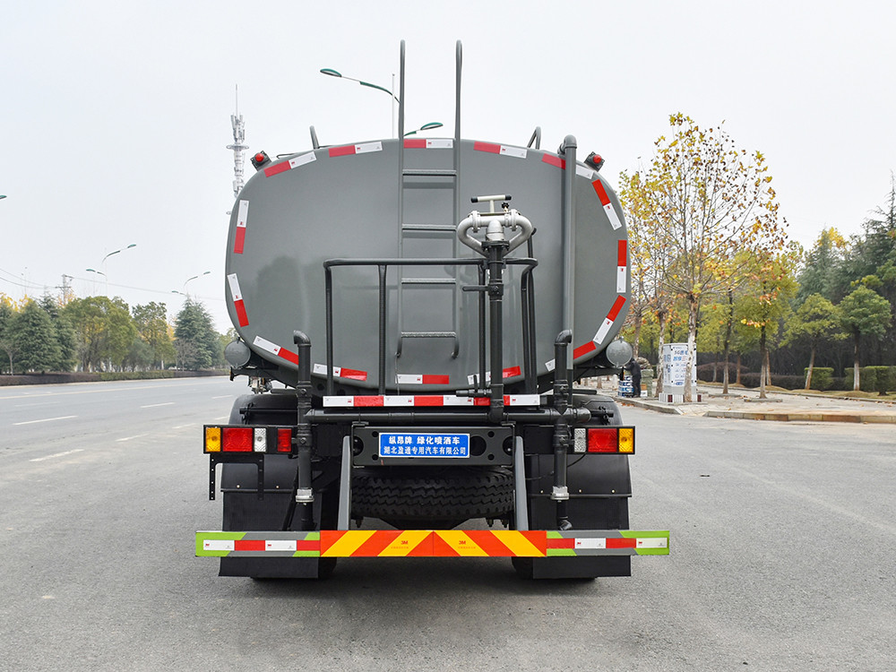 湖北盈通灑水車產品標配前噴(鴨嘴)、后沖、后灑、側噴、后置式工作 平臺,平臺上配置綠化水炮(可 360°旋轉,既可以調成柱狀,也可 以調成霧狀,更可以調成直沖狀、大雨、中雨、小雨、毛毛雨),配 備優質大功率專用灑水泵(可自吸自排,可從河里或池塘抽水到罐體), 取力器,雜物過濾網,消防接口,自流球閥系統、取力器、球閥、濾網 均為國家標準產品,主管道加粗,法蘭墊、法蘭盤加厚,大通徑球閥。 整體具備性能優良安全可靠、效率高、流量大、維修方便等特點。