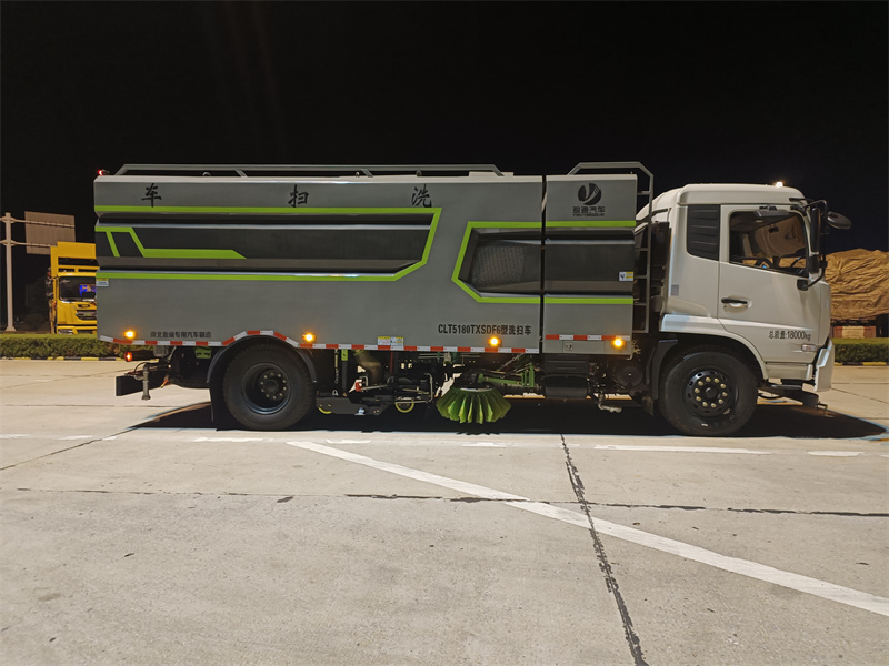 東風18噸清掃車產品簡述 洗掃車具有路面清洗,路面清掃路緣和路緣石立面洗刷、低壓沖洗、噴霧 除塵等多功能。 有“全洗掃”、“左洗掃”、“右洗掃”、“全掃”、多種作 業模式可選擇。選擇“全洗掃”模式清洗 廣場和路面,清晰效率高效果好,洗 凈率達 95%以上。選擇“左洗掃”或“右洗掃”模式清洗 路面和路緣。需要進 行路面清掃或路面保潔作業時,可選擇掃路模式。需要噴霧除塵時,可開 啟% 節磨,進行噴霧除塵作業。可以像灑水車一喂普面進行低壓沖洗作業。 洗掃車適用于城市道路、高速公路、廣場、機場、碼頭、隧道、橋梁、合 理墻壁、路緣和 路緣石立面的機械清洗、清掃、噴霧除塵等清潔作業