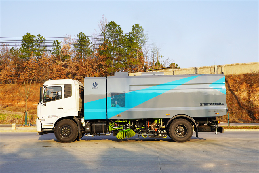 | 國六東風(fēng)天錦洗掃車 | 采用東風(fēng)天錦DFH1180EX8型底盤,達(dá)到國Ⅵ排放,垃圾箱容積9立方米,水箱容積7立方米,是自動(dòng)化程度高的道路清掃車 |