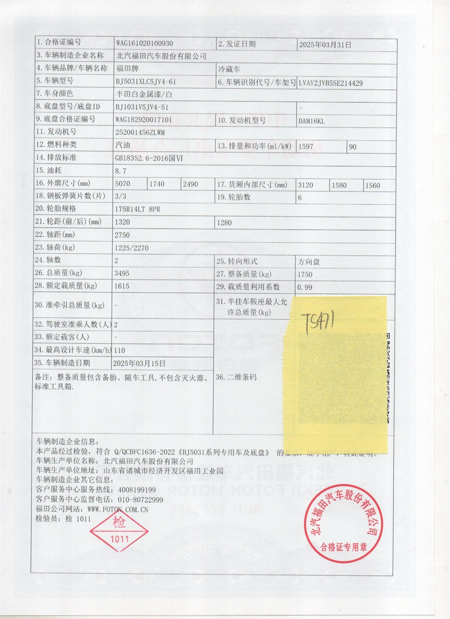 廂體采用內外玻璃鋼板材制作,中間填充8cm 厚高密度保溫材料,底板選用加厚型防滑花紋鋁板,鋁合金型材包邊,不銹鋼門鎖件,后雙開門,帶單側開門,匹配零下15度制冷機組。其余按冷藏車標配制作。提供機動車上戶手續(xù)(機動車合格證、上戶發(fā)票、車輛保修手冊、隨車工具)。