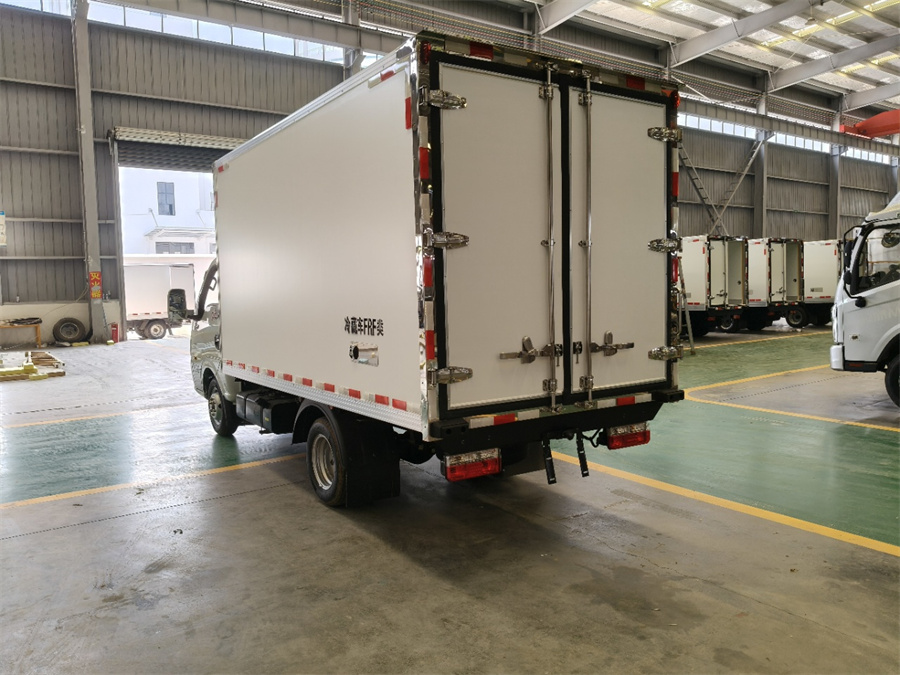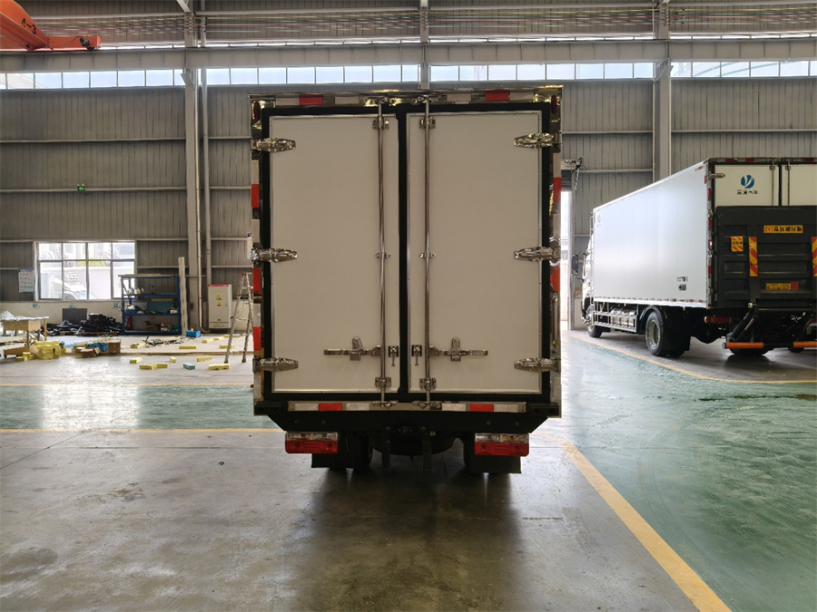 廂體工藝: 廂體材質采用內外玻璃鋼,中間XPS保溫板,后雙開門,廂體右側靠前選裝開側門,底部采用花紋防滑鋁板,前部排水孔,門邊條采用迷宮式橡膠密封條,鋁合金型材包邊,不銹鋼包角,不銹鋼門鎖,不銹鋼門框及合頁,廂體內節能LED照明燈。