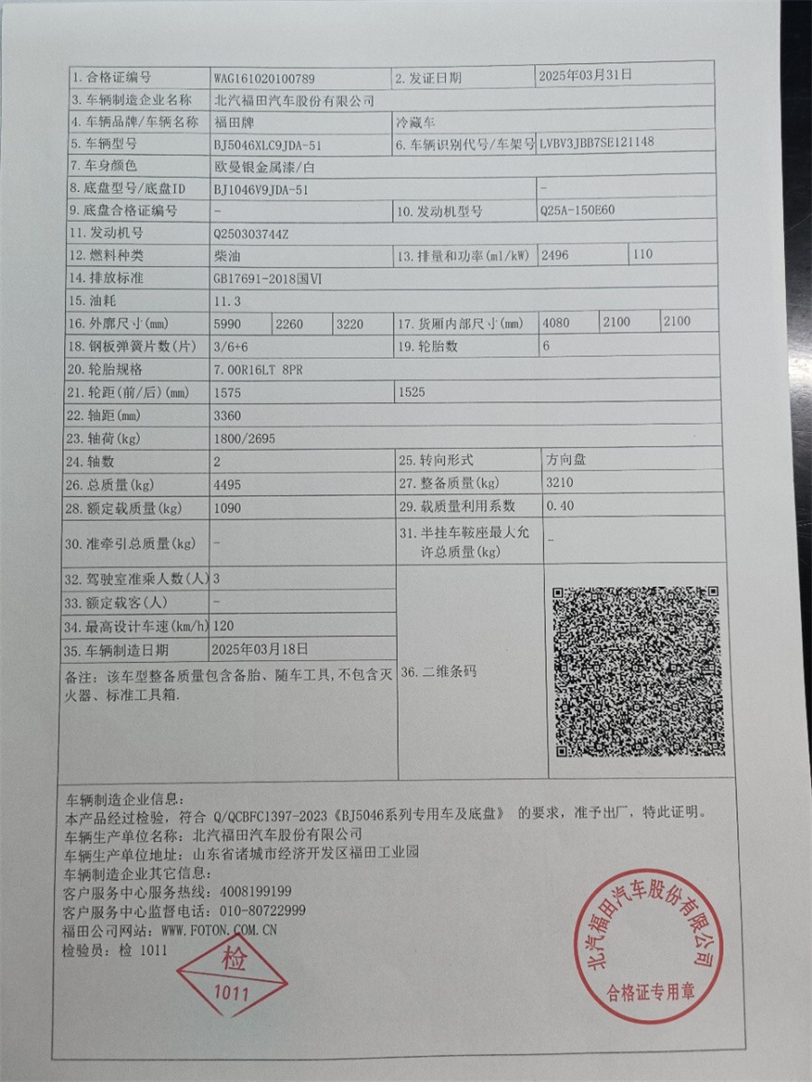 • 藍牌福田領航冷藏車-福田領航藍牌冷藏車