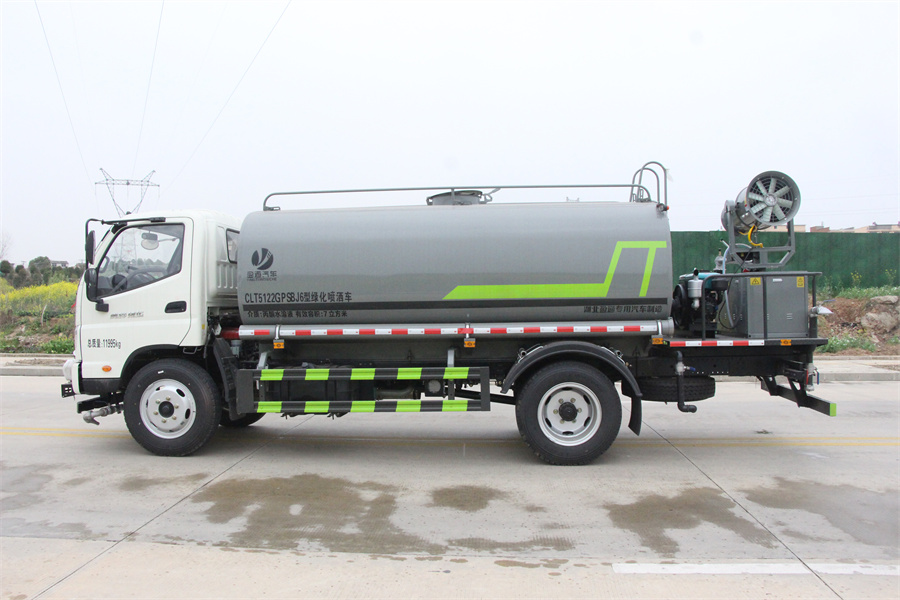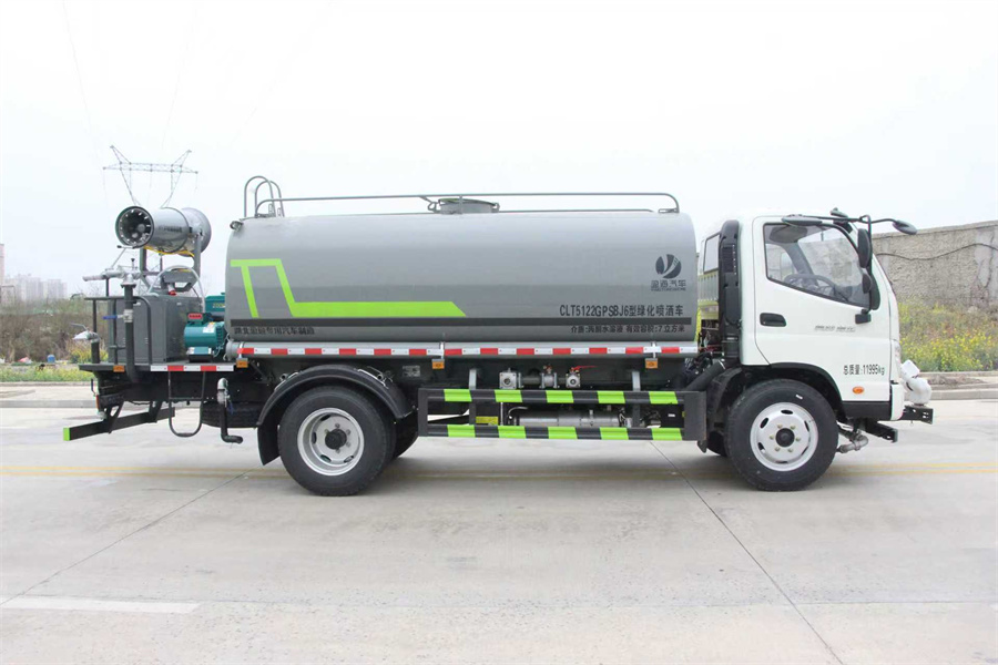 產品簡述:縱昂牌 CLT5122GPSBJ6 型綠化噴灑車標配前噴(鴨嘴)、后對 沖、后灑、側噴、后置式工作平臺,平臺上配置綠化水炮(可 360°旋轉,既可 以調成柱狀,也可以調成霧狀),配備優質大功率專用灑水泵(可自吸自排, 可從河里或池塘抽水到罐體),取力器,雜物過濾網,消防接口,自流球閥系統、 取力器、球閥、濾網均為國家標準產品,主管道加粗,法蘭墊、法蘭盤加厚, 大通徑球閥。整體具備性能優良安全可靠、效率高、流量大、維修方便等特點。