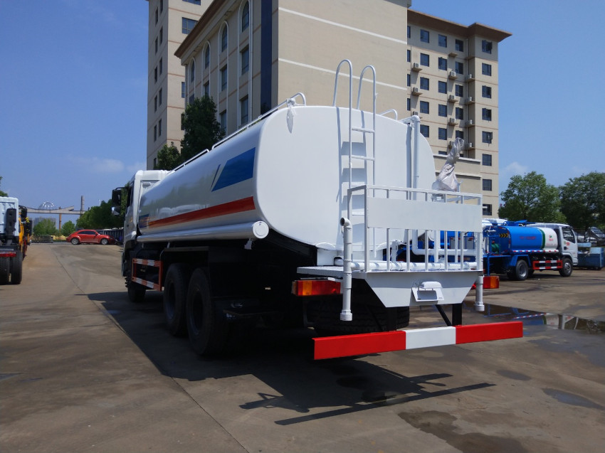 隨底盤選裝駕駛室;選裝側噴及農藥炮;品名:水;密度:1000千克/立方米;有效容積:15.6立方米; 罐體外形尺寸(長×長軸×短軸)(mm):6600×2300×1500;ABS吸程≧7米,灑水寬度≧14-16米, 射程≧25-30米,引水時間<5min,流量60m3/h。前沖(噴)、后灑、帶側噴(花灑)、帶后工作平臺、 平臺上安裝綠化灑水高炮(炮噴射形狀可調節:直沖、大雨、中雨、毛毛雨、霧狀、可連續調節, 360°旋轉),配消防接口,自流閥,濾網,帶自吸自排功能。配備大功率專用灑水泵, 泵可自吸自排,安裝過濾網,帶消防接口,可通過消防栓進水,帶自流閥, 隨車選裝20米綠化卷盤,可噴灑農藥,罐體金屬漆。罐體有橢圓和方圓罐兩種, 可根據用戶的要求定做。 裝置等部件組成。水泵、取力器、球閥、濾網均為國家標準產品,具有性能優良, 罐體為橢圓形或方形,采用武鋼優質碳鋼板制成,罐體倉內1.5米一道隔板, 具有防波防蕩作用, |