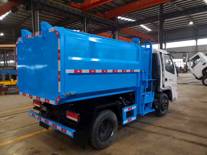 掛桶式垃圾車(自裝卸式垃圾車)介紹掛桶式垃圾車又稱自裝卸式垃圾車,由密封式垃圾廂、液壓提升翻轉系統、操作系統組成。垃圾桶內垃圾翻倒上下一次工作循環時間≤50秒。可選配全國通用塑料垃圾桶和鐵桶,能實現一臺車與多個垃圾桶聯合作業,循環運輸,充分提高了車輛的運輸能力,節省財務預算。廂體密封性好,無二次污染,可運輸各類垃圾,特別適用于短途運輸和轉運垃圾,如環衛部門對城鎮垃圾的清理、運輸等。