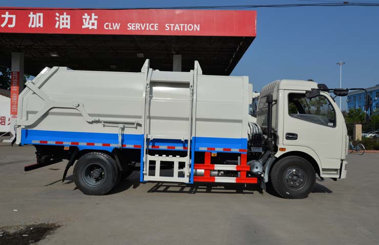 容積6~8立方米,箱體采用Q235碳鋼材質(zhì),箱體右側(cè)配液壓掛桶提升機(jī),可掛國(guó)標(biāo)120升+240升塑料垃圾桶,駕駛室外部手動(dòng)操作,鐵通掛架;后門(mén)鎖緊為機(jī)械鎖緊,手動(dòng)開(kāi)啟;相同結(jié)構(gòu)為槍版形式。