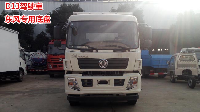 東風專用底盤,新款D13駕駛室,軸距3.95米,玉柴160/康明斯170馬力發動機,6檔變速箱,前橋2.8噸,后橋8噸,9.00R20鋼絲胎,帶有ABS,下防護,方向助力。
