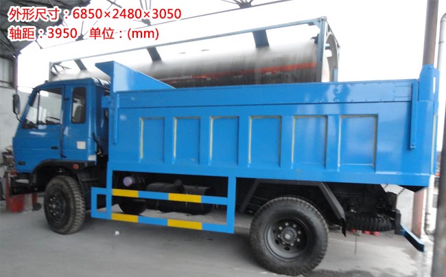載重量10噸,外形尺寸長4.2米,寬2.3米,高0.8米,采用4毫米厚鋼板制作,箱頂可展開,可向兩邊展開折疊,箱底雙缸液壓自卸,手動開啟尾門。