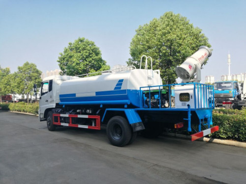 底盤配置:國五東風天錦灑水車底盤,180馬力發動機,軸距:4700mm/5000mm,空調ABS。8.5立方水罐。裝60米射程噴霧機,配套75KW發電機