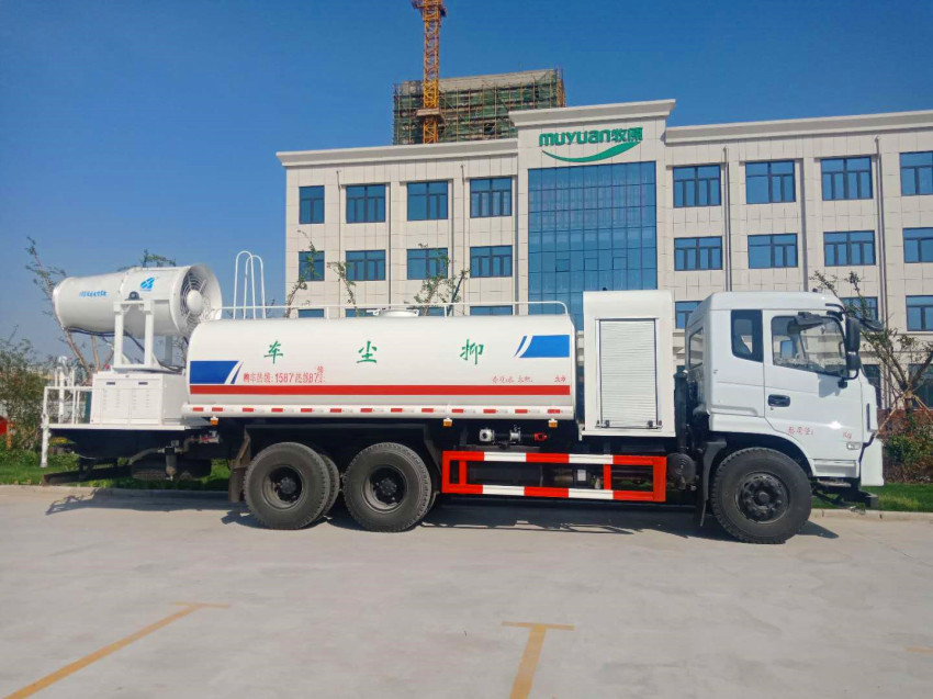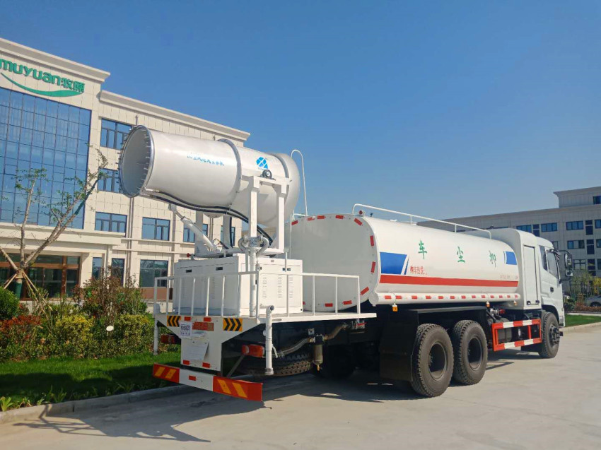 霧炮車,灑水車采用專用底盤組裝,上裝分為噴霧機、機組、水罐罐體三大部分,依靠環保噴霧上高速運轉的風機風送原理,把罐的水霧化風送到60-160米遠的射程,有效揚塵的產生。