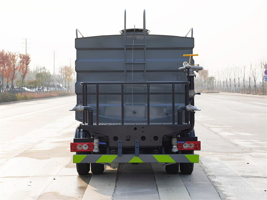 我公司產品標配前噴(鴨嘴)、后沖、后灑、側噴、后置式工作平臺,平臺上配置綠化水炮(可 360°旋轉,既可以調成柱狀,也可以調成霧狀,更可以調成直沖狀、大雨、中雨、小雨、毛毛雨),配備優質大功率專用灑水泵(可自吸自排,可從河里或池塘抽水到罐體),取力器,雜物過濾網,消防接口,自流球閥系統、取力器、球閥、濾網均為國家標準產品,主管道加粗,法蘭墊、法蘭盤加厚,大通徑球閥。整體具備性能優良安全可靠、效率高、流量大、維修方便等特點。