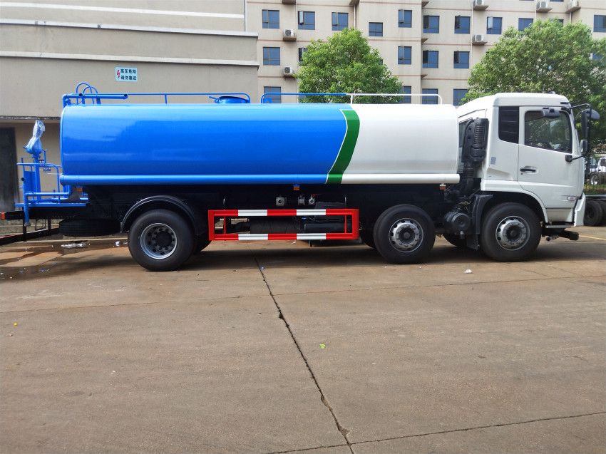 東風后雙橋灑水車駕駛室帶臥鋪,可翻轉。罐體采用武鋼優質鋼材制作,罐體容積為18立方。帶爬梯,罐體兩側帶炮筒儲存水管所需,帶鎖。灑水車前沖(噴)后灑,帶側噴,罐體后帶工作平臺,平臺上安裝綠化灑水車炮,灑水炮可全方位旋轉,可連續調成直沖狀、大雨、小雨、毛毛雨,帶安全護欄,可自吸自排,安裝過濾網,帶消防接口,可通過消防栓進水,帶自流閥。