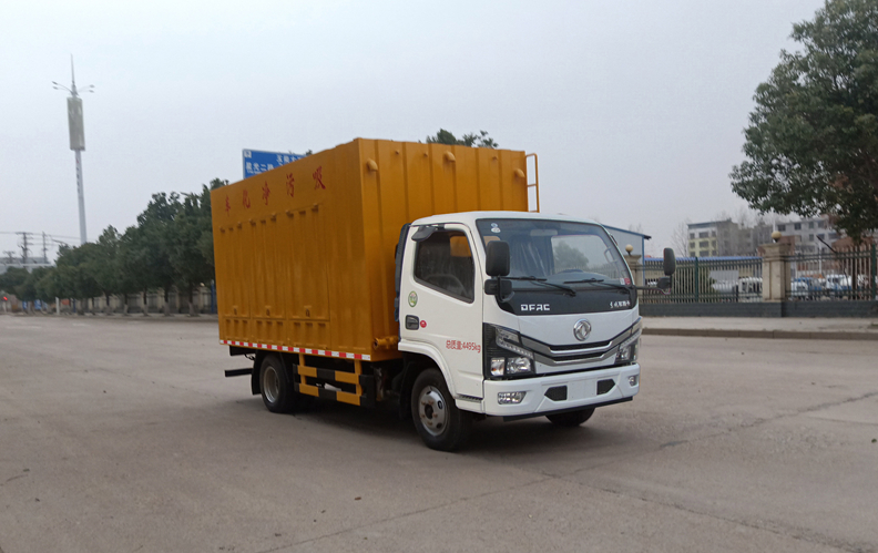 1. 污水處理車采用東風多利卡底盤改裝而成,整車長為5.995米、寬為1.99米,高為2.75米。可上藍牌,有免征公告,能夠在市內使用。