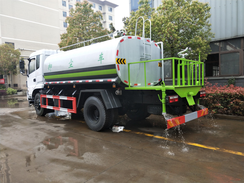 東風御虎12噸灑水車 罐體采用武鋼優質碳鋼板,采用國標5mm厚制作,罐體內設有隔浪板,具有防波浪作用,以減低汽車行駛時,對罐體的沖擊,射程可達35米,垂直吸程≥7米,灑水寬度≥14-16米,帶自吸自排功能,消防栓接口,前沖,后灑,側噴,后工作平臺帶綠化水炮,綠化灑水炮(噴射形狀可調)直沖狀、大雨、中雨、毛毛雨,可連續調節,自流閥,三通濾網,大功率灑水泵,2根3米輸水管,金屬漆,其它灑水車標配。