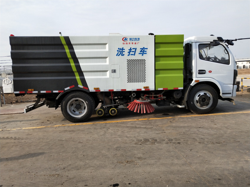 洗掃車具有路面清洗、路面清掃 路緣和路緣石立面洗刷、低壓沖洗、噴霧除塵等多功能。有“全洗掃”、 “左洗掃”、 “右洗掃”、 “全掃”、 多種作業(yè)模式可選擇。選擇“全洗掃”模式清洗廣場和路面,清洗效率高效果好,洗凈率達95%以上。選擇“左洗掃”或“右洗掃”模式清洗路面和路緣 。需要進行路面清掃或路面保潔作業(yè)時,可選擇掃路模式。需要噴霧除塵時,可開啟噴霧裝置,進行噴霧除塵作業(yè)。可以像灑水車一樣對路面進行低壓沖洗作業(yè)。