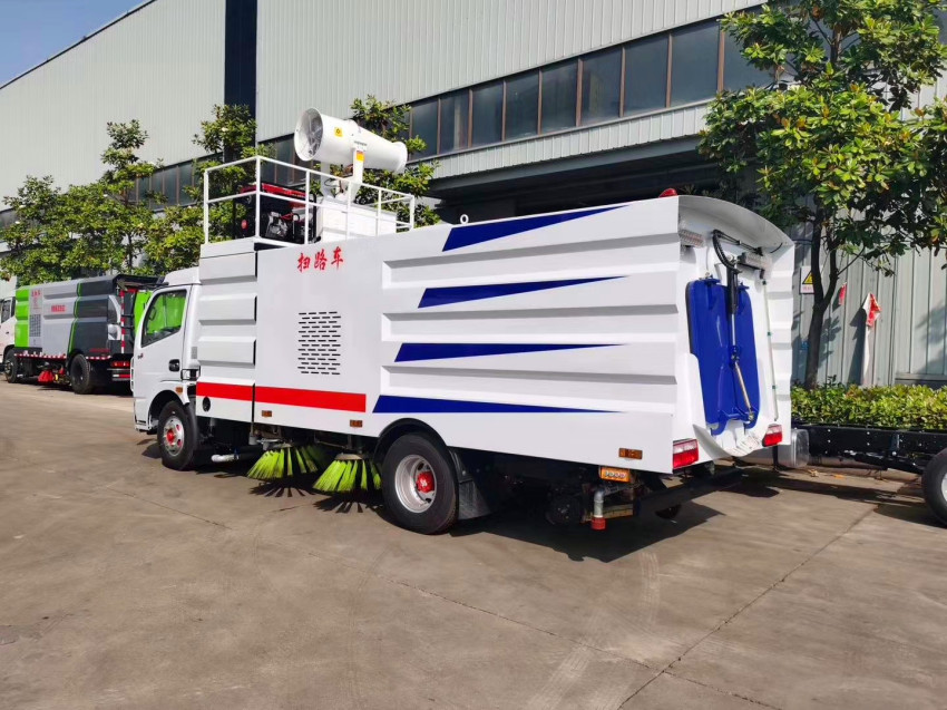 東風(fēng)5方掃路車,采用東風(fēng)原裝底盤,3308mm軸距,玉柴115馬力國五柴油發(fā)動機,上裝配置:1.5方水箱,4方的垃圾箱,中置4掃盤,后置吸盤,1.5方碳鋼水箱,4方不銹鋼垃圾箱,配備江鈴77馬力副發(fā)動機,德國西門子控制開關(guān),合資電磁閥組,雙向操作按鈕,瑞諾馬達及高品質(zhì)隔膜泵能,無極變速自動離合器、免維修離心式風(fēng)機,耐磨油缸,手動泵應(yīng)急系統(tǒng),緊密冷彎無縫液壓油管,尾部LED箭頭燈