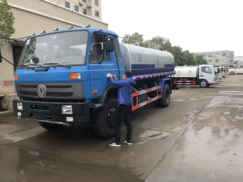 3.灑水車產品備注:灑水泵可起到吸水和加壓排水功能,可將池塘的水直接罐也可直接從城市街道的消防栓上連接注水,罐。所有灑水車同時具有運水或裝載其他(如:牛奶、食用水)功能,罐體外壁經發泡或巖棉處理后具有保溫功能。灑水車也可作噴藥車使用,可進行專業的防腐防銹處理,選裝不銹鋼泵,管道,水炮及不銹鋼罐體。對灑水車有特殊要求的用戶請提前告知,我們可按用戶要求設計改裝!井a品信息圖片僅供用戶選購參考,產品以實際提供為準】三、操作流程:1、使用前的工作 (1)檢查變速箱內油油面,以到油面螺塞孔的下緣為準,不足時添加齒輪油。 (2)檢查變速箱操縱桿,使之處于空檔位置,檢查取力箱操縱手柄位置,使之為水平向右位 置,使之為水平向右位置,檢查油門控制器,使其。