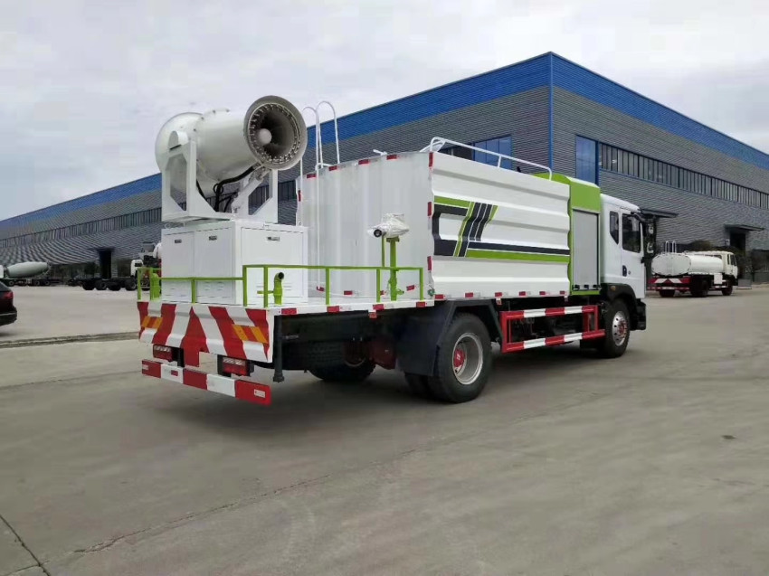 灑水車吸程≧7米,灑水寬度≧14-16米,射程≧25-40米,引水時間<5min,流量60m3/h。前沖(噴)、后灑、帶側噴(花灑)、帶后工作平臺、平臺上安裝綠化灑水高炮(炮噴射形狀可調節:直沖、大雨、中雨、毛毛雨、霧狀、可連續調節,360°旋轉),配消防接口,自流閥,濾網,帶自吸自排功能。配備大功率專用灑水泵,泵可自吸自排,安裝過濾網,帶消防接口,可通過消防栓進水,帶自流閥,此車尾部加裝大功率農藥噴灑炮,