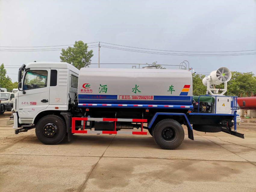 灑水車吸程≧7米,灑水寬度≧14-16米,射程≧25-40米,引水時間<5min,流量60m3/h。前沖(噴)、后灑、帶側(cè)噴(花灑)、帶后工作平臺、平臺上安裝綠化灑水高炮(炮噴射形狀可調(diào)節(jié):直沖、大雨、中雨、毛毛雨、霧狀、可連續(xù)調(diào)節(jié),360°旋轉(zhuǎn)),配消防接口,自流閥,濾網(wǎng),帶自吸自排功能。配備大功率專用灑水泵,泵可自吸自排,安裝過濾網(wǎng),帶消防接口,可通過消防栓進水,帶自流閥,此車尾部加裝大功率農(nóng)藥噴灑炮,