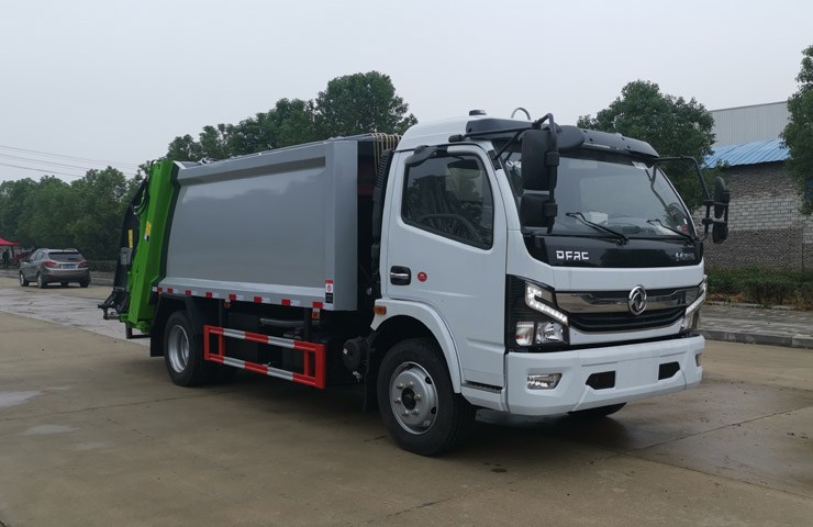 壓縮式垃圾車壓縮式垃圾車采用機電液一體化技術,主要通過垃圾廂、填裝器、推鏟、液壓系統等專用裝置,借助機、電、液聯合自動控制系統,通過車廂、填裝器和推鏟等專用裝置,實現垃圾倒入、壓碎或壓扁、強力裝填,把垃圾擠入車廂、壓實,還有卸料功能。其主要特點是垃圾收集方式簡便、 、具有自動反復壓縮以及蠕動壓縮功能,壓縮比高,裝載質量大,作業自動化,動力性、環保性好,整車利用效率高,密封性好的特點。