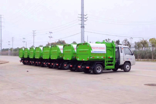 多種翻桶(斗)機構 :不同用戶可根據不同的垃圾桶,選裝不同的翻桶(斗)機構:翻標準垃圾鐵桶(300升)、塑料垃圾桶(240升)、隨車小垃圾斗(800升)、密封式垃圾斗(1400升)、勾臂式垃圾斗(3350升);