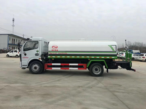 專用配置:罐體容積:9.2立方米,鋼板為4mm碳鋼Q235材質專用容積板制作,罐內隔板具有防波作用,以減輕汽車行駛時罐體液體沖擊;配大功率專用灑水泵,泵可自吸自排;整車前沖、后灑、側噴、后平臺帶綠化灑水炮,灑水炮可全方位旋轉,可連續調成直沖狀、大雨、小雨、毛毛雨;前封頭帶水位計,后平臺主管路帶1寸澆花接口,后爬梯,帶1個消防接頭,帶1個自流閥,1個過濾裝置。