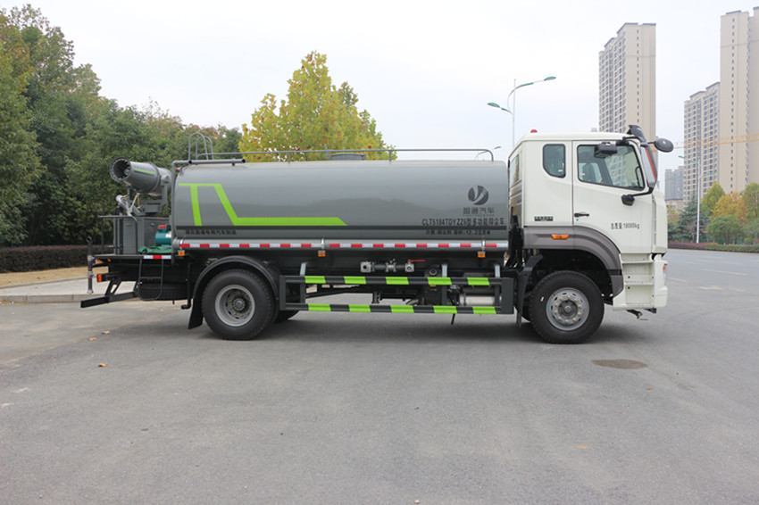 灑水車性能簡介:吸程≧7米,灑水寬度≧14-16米,射程≧25-40米,引水時間<5min,流量60m3/h。前沖(噴)、后灑、帶側噴(花灑)、帶后工作平臺、平臺上安裝綠化灑水高炮(炮噴射形狀可調節:直沖、大雨、中雨、毛毛雨、霧狀、可連續調節,360°旋轉),配消防接口,自流閥,濾網,帶自吸自排功能。