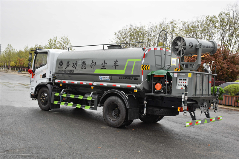 抑塵車具體配置:底盤部分,采用原廠東風(fēng)底盤,云內(nèi)150馬力發(fā)動(dòng)機(jī),3800mm軸距,萬(wàn)里揚(yáng)6檔變速箱,8.25R20輪胎,國(guó)六排放標(biāo)準(zhǔn),帶空調(diào),氣囊座椅,多功能方向盤,專用部分,罐體采用優(yōu)質(zhì)碳鋼材質(zhì)制作,帶兩個(gè)前沖噴頭、兩個(gè)后灑噴頭、兩個(gè)側(cè)噴、后工作平臺(tái)、尾部安裝綠化炮,綠化炮可以自行調(diào)節(jié)(柱狀,大雨,中雨,小雨,霧狀),帶專用灑水泵可以實(shí)現(xiàn)自吸自排,帶消防接口,兩根輸水管,加裝30型柴油霧炮,帶底盤合格證和整車合格證