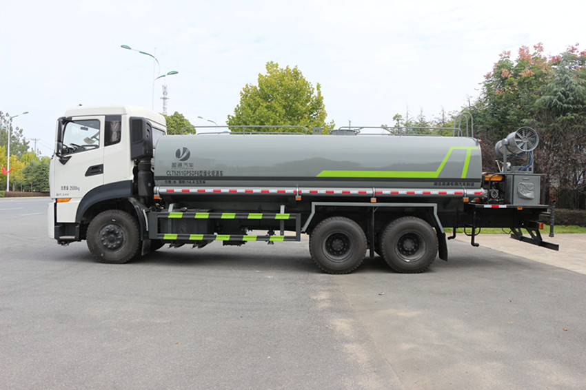 東風天龍KL后雙橋國六灑水車主要功能有:前沖、后灑、側灑、高炮(可調成柱狀或霧狀、可噴灑農藥)、帶過濾裝置、自吸自排、帶自流閥,帶消防接頭。帶有綠化水槍和可調式噴頭,噴頭角度可根據(jù)路面的寬窄進行調整,廣泛用于環(huán)衛(wèi)、園林、公路等部門。灑水車罐體采用武鋼優(yōu)質碳鋼板材制作,采用大型卷板機一次成型,罐體內部采用防浪板結構,可有效阻止罐體內部水的晃動性,加強車輛使用穩(wěn)定和罐體使用壽命。封頭及罐體結合處采用先進的弧形對接焊接工藝。東風天龍KL后雙橋國六灑水車,該車的改裝部分,設計上突出了多功能和人性化理念,基本做到了一車多用,功能齊全,美觀大方;在制作上選用的配套件都是國內同行業(yè)中的優(yōu)質產品,對制作工藝進行嚴格把關;在安全性能上,該車在試制和檢驗階段對環(huán)保、燈光、制動、組合分配,側防護等項都進行了嚴格的檢測,并進行了49項技術參數(shù)、5千公里路試檢測。