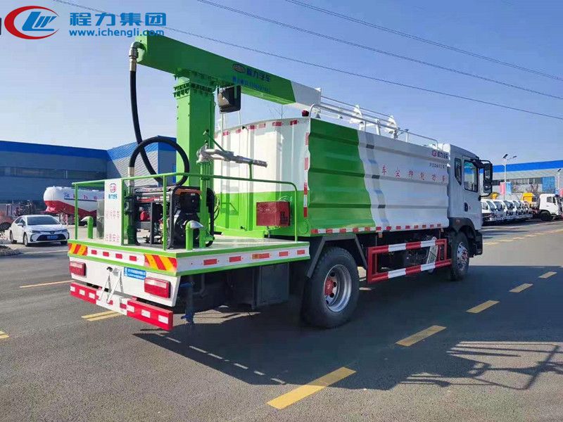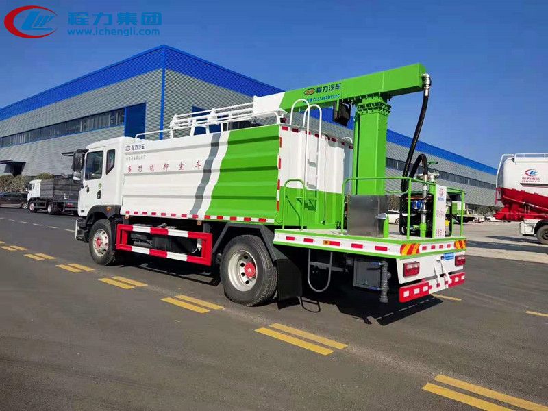 上裝配置:罐體為11 立方形罐,罐體內(nèi)部做防腐,抑塵噴灑桿(帶旋轉(zhuǎn)伸縮功能)。具有前沖、后灑、高炮功能,罐體及管道做保溫處理,噴灑桿離地3.5-4.5 米,億豐水泵,后部平臺(tái)帶8KW 副發(fā)電機(jī)組,罐體內(nèi)部加兩個(gè)1.5KW 電機(jī)(帶攪拌功能)罐體噴漆上白下藍(lán),平臺(tái)和噴灑桿綠色。遙控操作噴灑桿上下左右旋轉(zhuǎn),平臺(tái)較上一臺(tái)車左右加寬20CM,電控箱安裝在后部平臺(tái)。