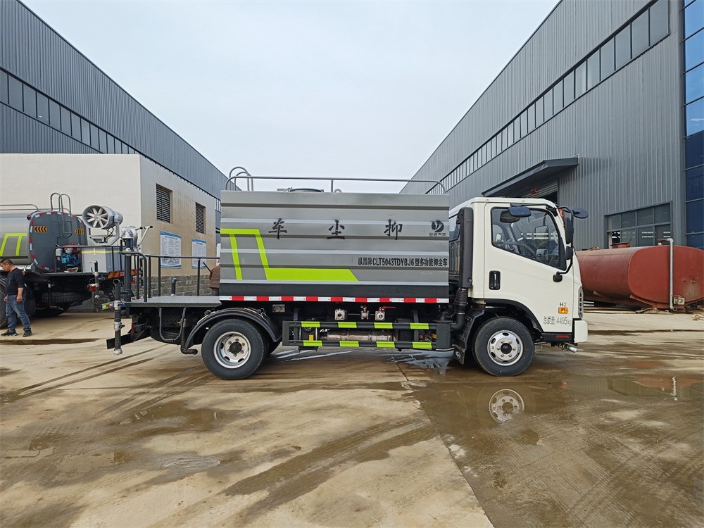 福田7方藍牌抑塵灑水車 整車型號 CLT5043TDYBJ6 型多功能抑塵車 2 發動機型號 Q23-115C60 3 發動機馬力/功率 全柴 115 馬力/85KW 4 發動機排量 2300ML 5 變速箱 萬里揚 5 檔 6 輪胎規格 7.00 鋼絲胎 7 軸距 3360 8 總質量 4495KG 9 整備質量 3800KG 10 額定載質量 500KG 11 整車尺寸(長×寬×高) 5.998*1.99*2.8 12 罐體容積 7 方 13 燃料種類 柴油 14 排放標準 國六 15 水泵型號 40/50 16 罐體材質 Q235 碳鋼
