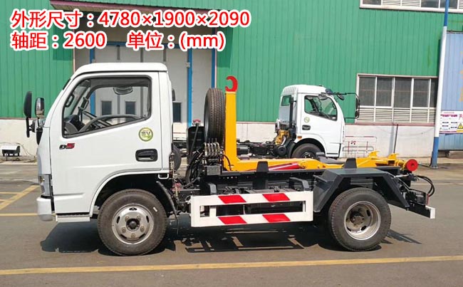配套5~6立方米勾臂垃圾箱,高強度主勾臂,雙液壓油缸,采用國產油泵、多路閥、油缸,駕駛室外操作,尾部帶滾輪,箱體鎖緊裝置,鎖緊后可實現垃圾車自卸。