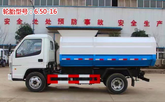 容積3~4立方米,密封式箱體結(jié)構(gòu),頂部前端有進(jìn)料箱蓋,箱體尾部有后開門,手動(dòng)機(jī)械鎖緊,掛桶裝置位于箱體右側(cè),采用國(guó)產(chǎn)液壓系統(tǒng)、多路閥、油缸、高壓軟管、液壓油箱、濾油器、通過這些組合實(shí)現(xiàn)專用功能。