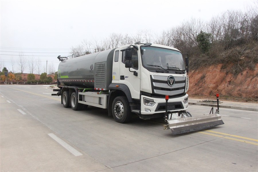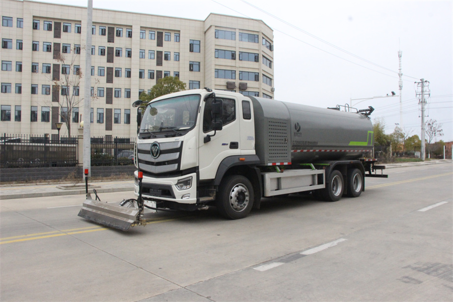 福田15方新能源電動灑水車該車主要用于城鄉園林綠化,路面噴灑;主要裝置為罐體及噴灑裝置;罐體總容量:14立方米;罐體有效容積13.3立方米;介質:丙酮水溶液,密度950千克/立方米,罐體外形尺寸(長×長軸×短軸)(mm):5000×2400×1700;側防護材料為鋁合金+Q235碳鋼,連接方式為螺栓連接;后防護材料為:Q235碳鋼,連接方式為:螺栓連接;后部防護截面尺寸(mm):120×50,后部防護離地高度(mm):490;驅動電機額定功率:220kW,驅動電機峰值功率:360kW;儲能裝置種類:磷酸鐵鋰電池,儲能裝置單體/總成生產企業:寧德時代新能源科技股份有限公司;ABS型號/生產企業:ABS-E/采埃孚商用車系統(青島)有限公司;選裝前部電子水炮樣式,選裝前部不帶電子水炮,該狀態下車長為9600mm,9220mm;當前部安裝電子水炮時,車長為10100mm,9720mm,車輛前伸500mm;選裝后部不帶霧炮樣式。選裝噴灑裝置樣式,選裝罐體后部高位花灑裝置,選裝箭頭燈裝置,選裝大小工作平臺.選裝后部對沖裝置,選裝罐體頂部罐口裝置.