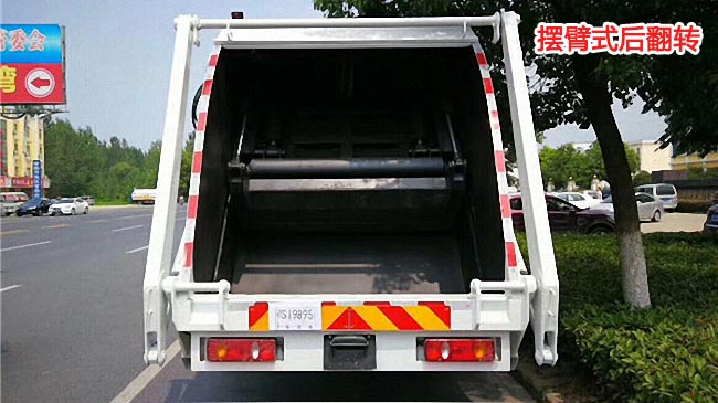 容積12~14立方米,弧形箱體,邊4底5碳鋼材質,內有推板、刮板、后翻轉、后部鎖緊門,國內品牌油缸、多路閥、油泵,高密度液壓油管。