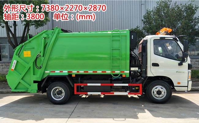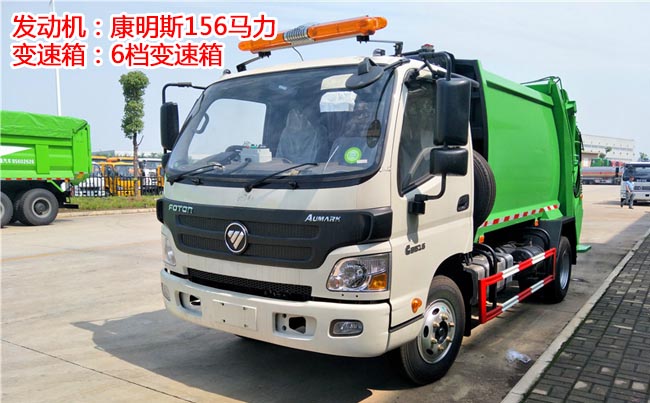 福田歐馬可壓縮式垃圾車,2.05米寬駕駛室、單排前翻、康明斯154馬力,6檔變速箱、軸距3.8米,6噸后橋、7.50R16鋼絲胎、動力轉向、空調、定速巡航、離合助力、斷氣剎、ABS。