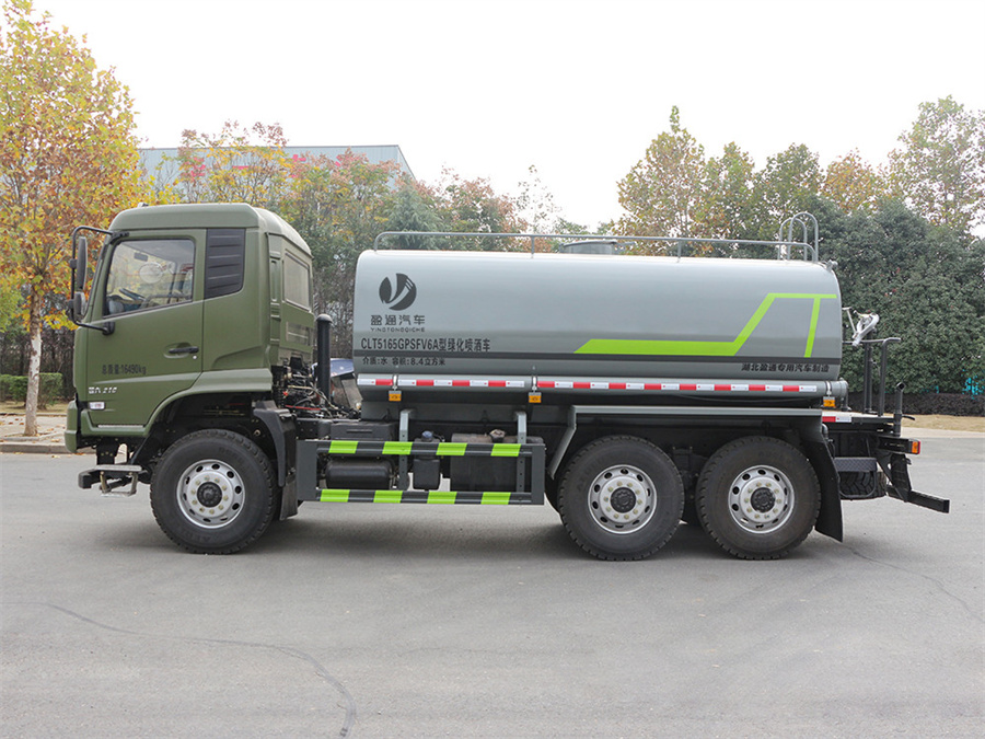 東風(fēng)天錦六驅(qū)10方灑水車底盤配置: 東風(fēng)天錦六驅(qū),發(fā)動機(jī)康機(jī) 210 馬力,韶齒 6 檔,315 真空胎, 軸距 3500+1250,前橋 3.8T/雙后橋 4.5T,電動玻璃,方向助力,斷 氣剎,ABS